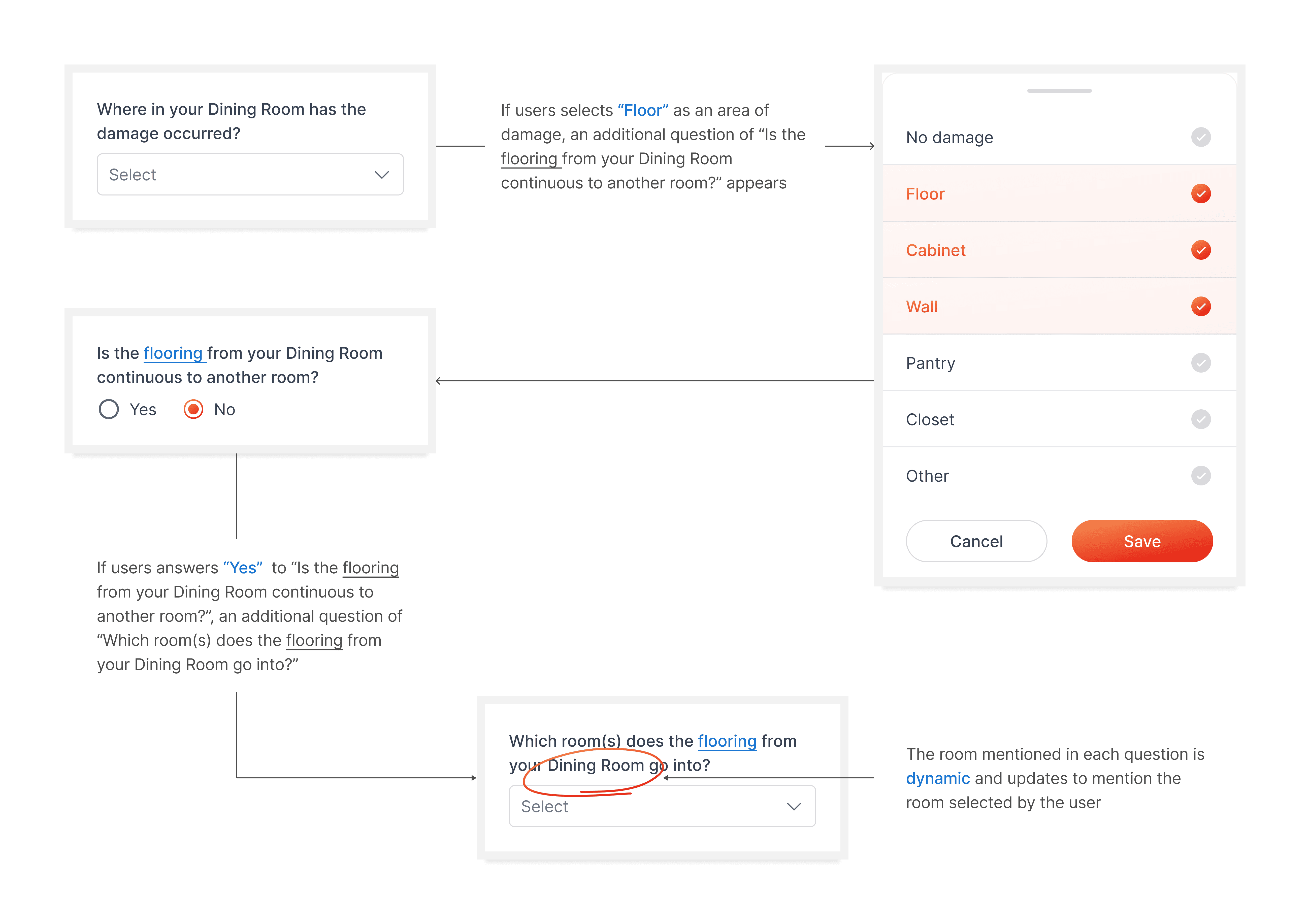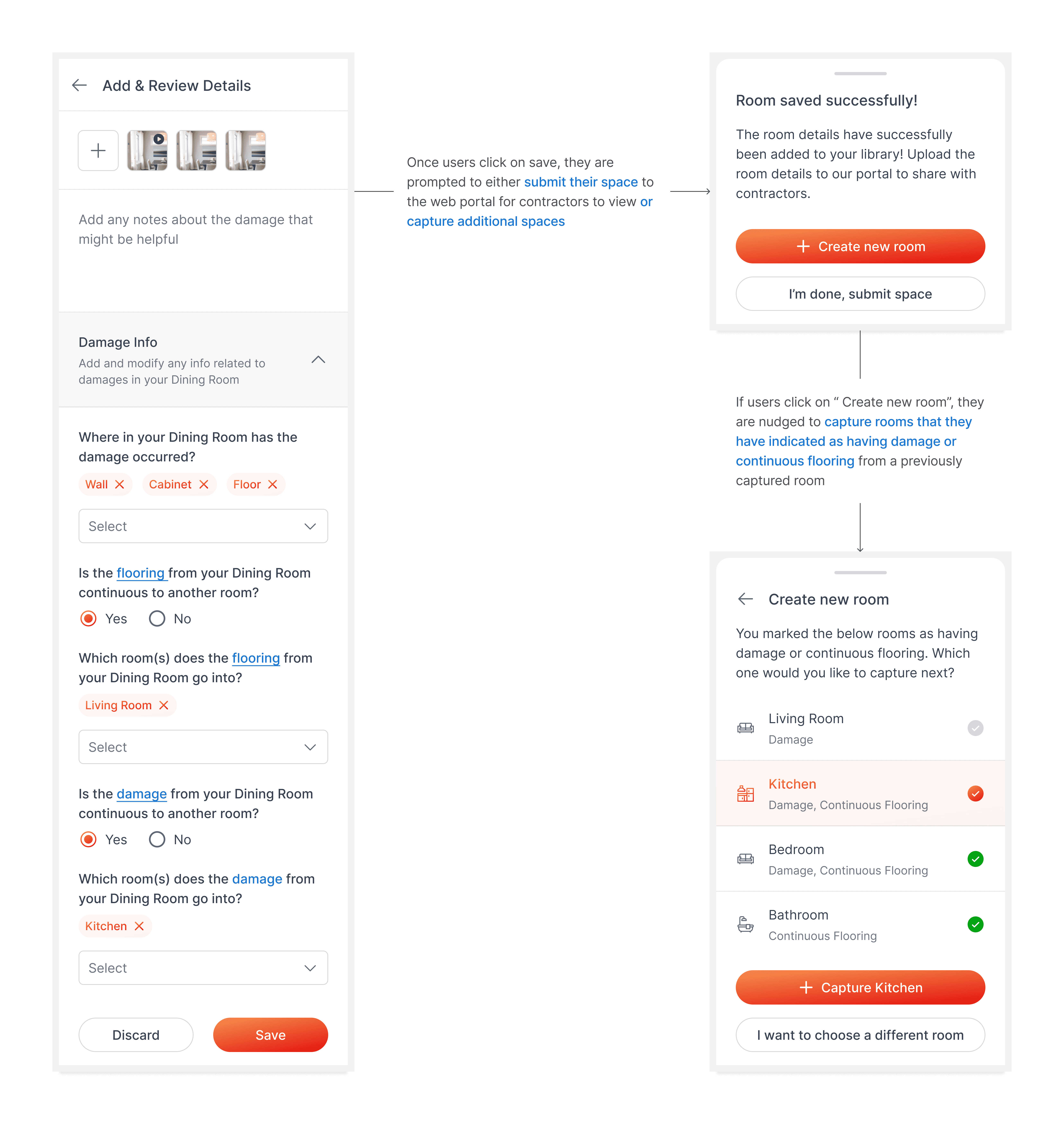Homeowners could review and add comments related to the captured space. Conditional logic streamlined this step by displaying only relevant questions based on previous inputs, minimizing user overwhelm.