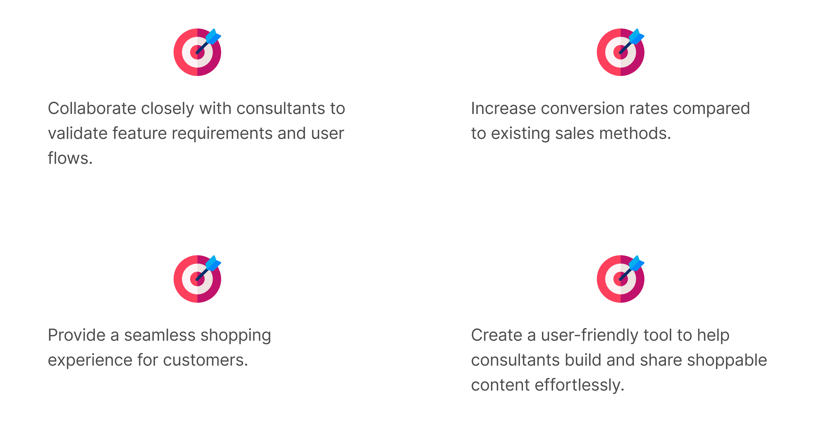 Given the rise of short-form content across social media, we saw an opportunity to empower consultants by providing them with a tool to create web-hosted, shoppable videos. With very few platforms offering seamless integration with external shop management systems or direct access to product databases, we built StreamStyle —a tool for consultants to create, personalize, and share short-form, shoppable content with their networks, without needing to set up a separate website.