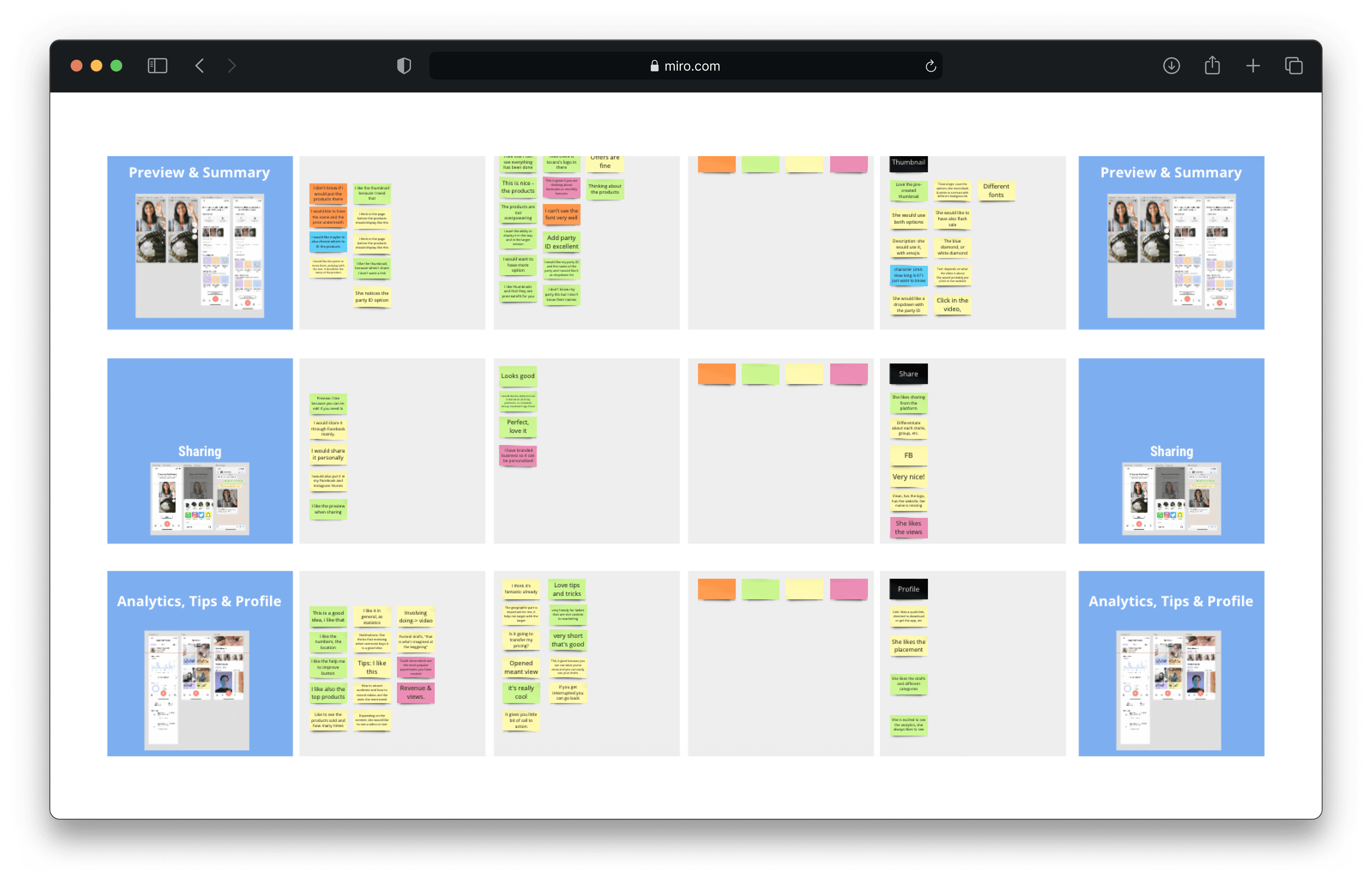 We also ran a design sprint to rapidly test ideas and features beyond the MVP. Through user interviews and testing with consultants, we gathered key insights that shaped the future of the platform, focusing on features like product database integration and video personalization.